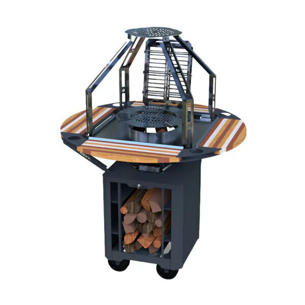 El Asador Tromen Timbal es el complemento ideal para tus reuniones familiares. Diseñado con una base portaleña con ruedas, facilita su movilidad y ubicación en cualquier espacio. Con altura de 106 cm y altura total de 173 cm con percha, es perfecto para asar a la perfección. Incluye parrillas y planchas, además de estaca cruz, percha y tabla, garantizando una experiencia completa en cada asado.